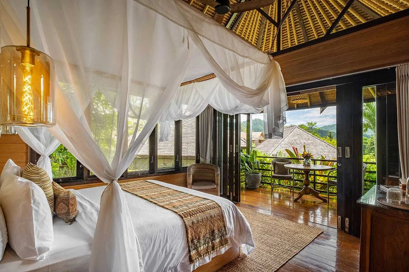 ・獨一無二的手工竹造工藝與火山絕景:每棟別墅皆為造型獨特的竹編藝術建築,採全開放式空間設計。躺在床上即可直面阿貢火山與谷地雲海,是賽德門最具標誌性的避世美宿之一。